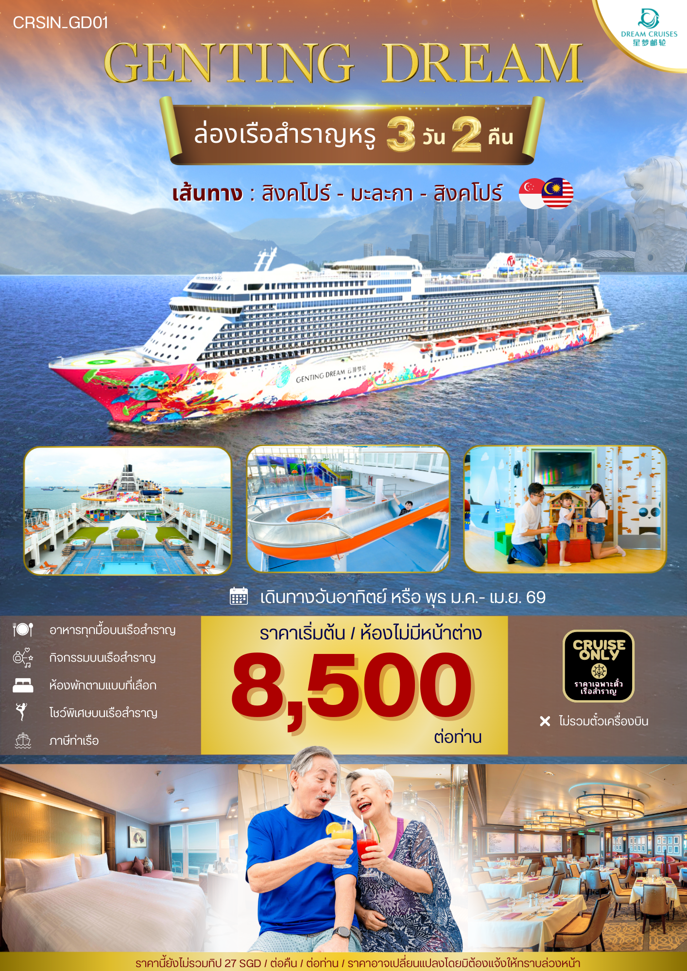 ล่องเรือสำราญ สิงคโปร์-มาเลเซีย พักบนเรือ 2 คืน