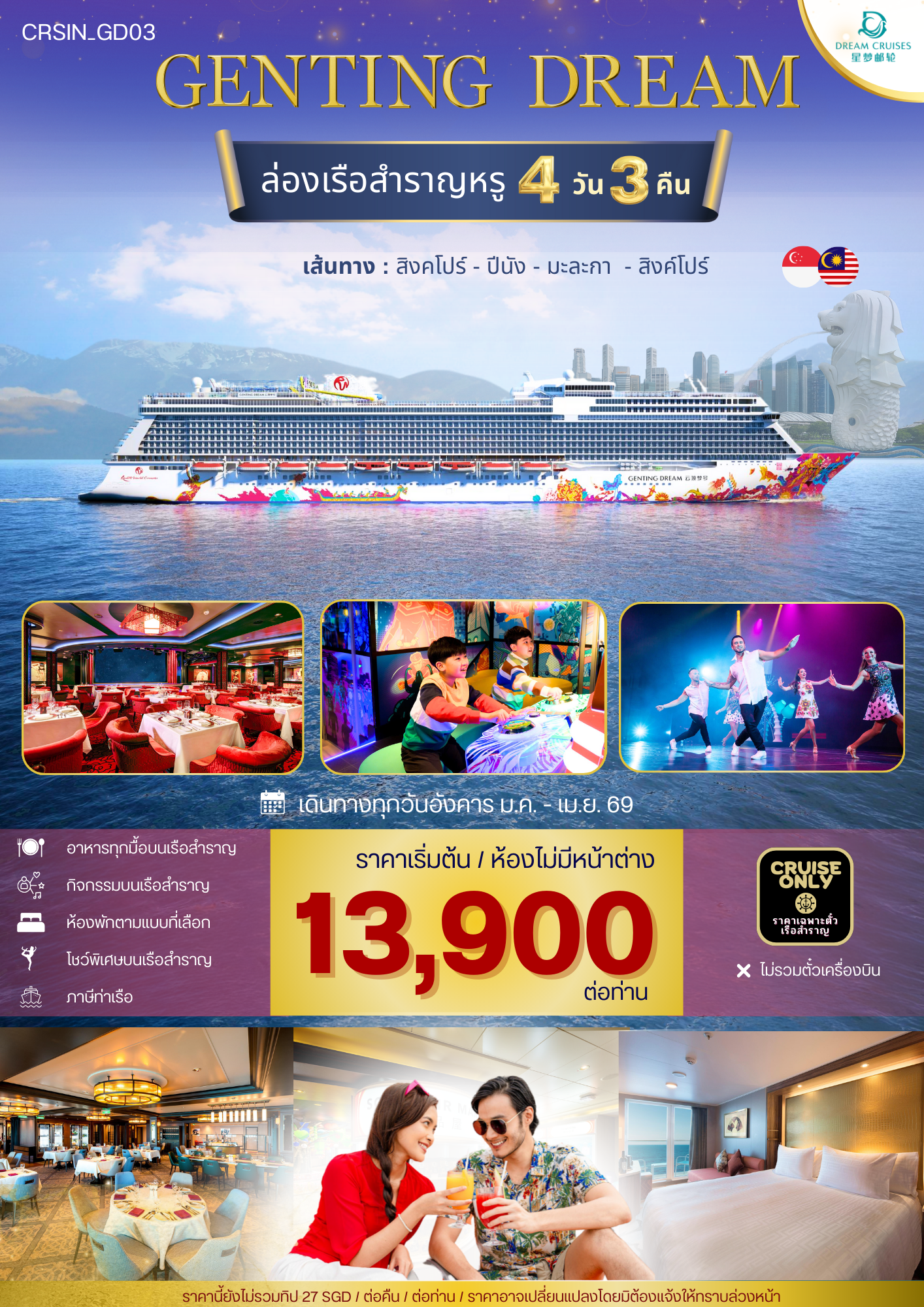 ล่องเรือสำราญ สิงคโปร์-มาเลเซีย พักบนเรือ 3 คืน