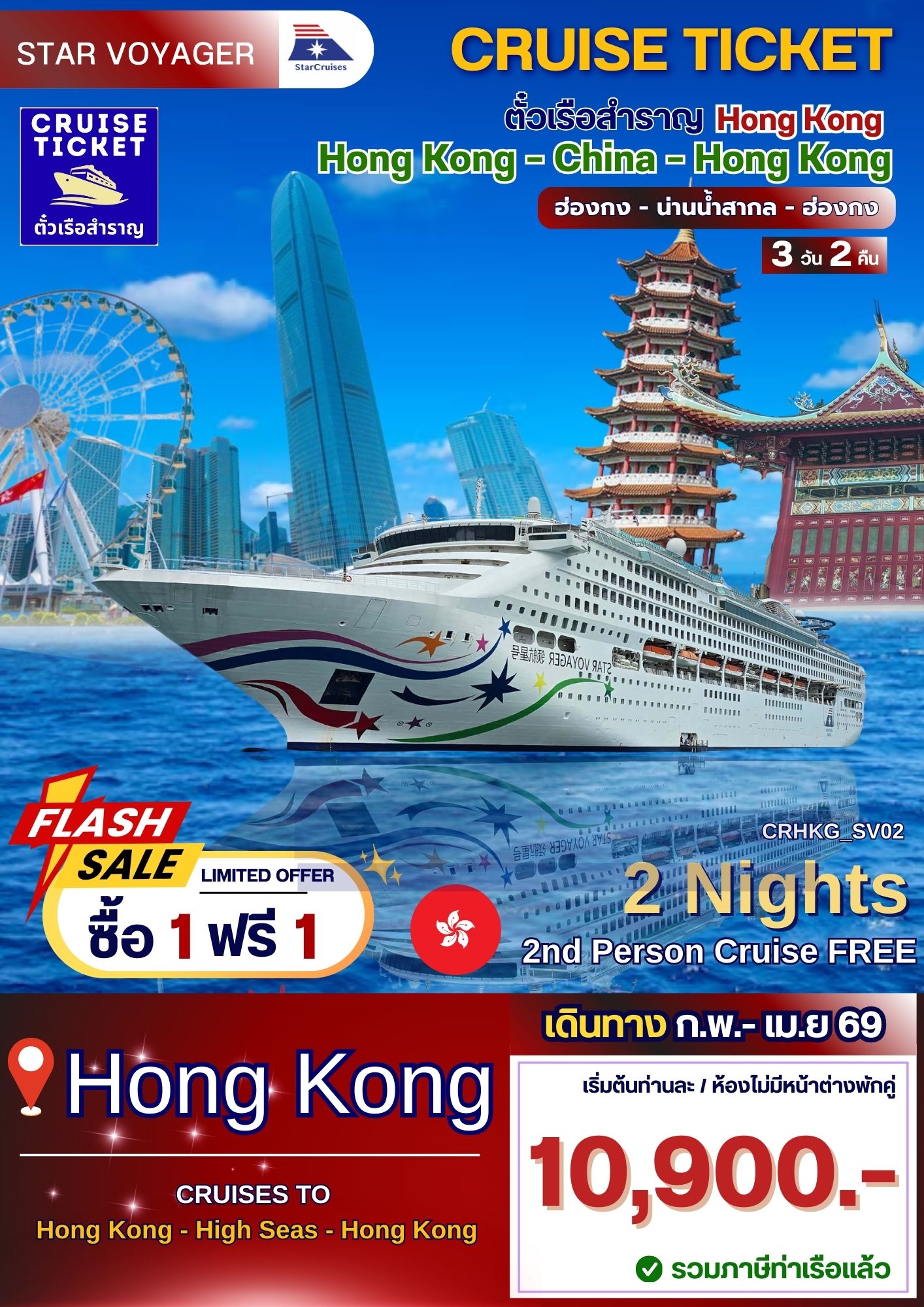 ล่องเรือสำราญ ฮ่องกง-น่านน้ำสากล พักบนเรือ 2 คืน