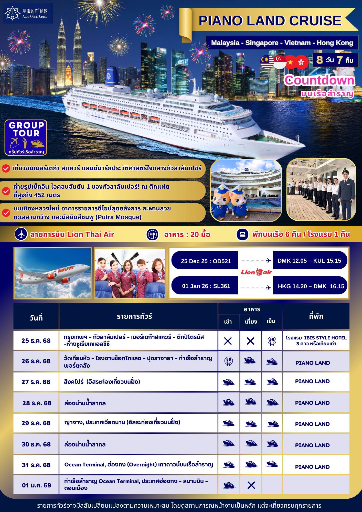 เทศกาลคริสต์มาส & ปีใหม่ 25 ธ.ค. 68 - 1 ม.ค. 69 | 39,800.- | 44,800.- |
