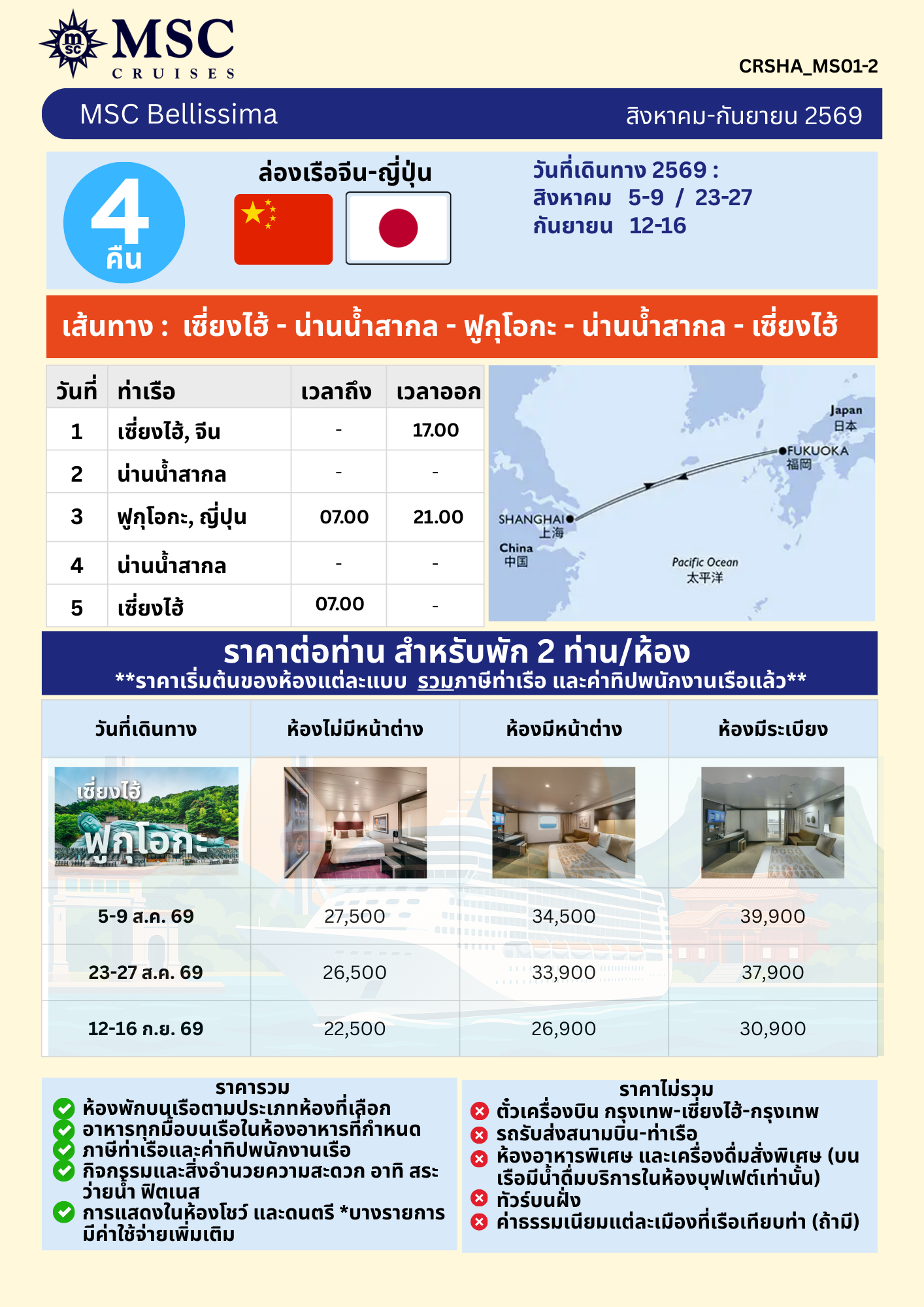 เส้นทาง เซี่ยงไฮ้ - น่านน้ำสากล - ฟูกุโอกะ - น่านน้ำสากล - เซี่ยงไฮ้
