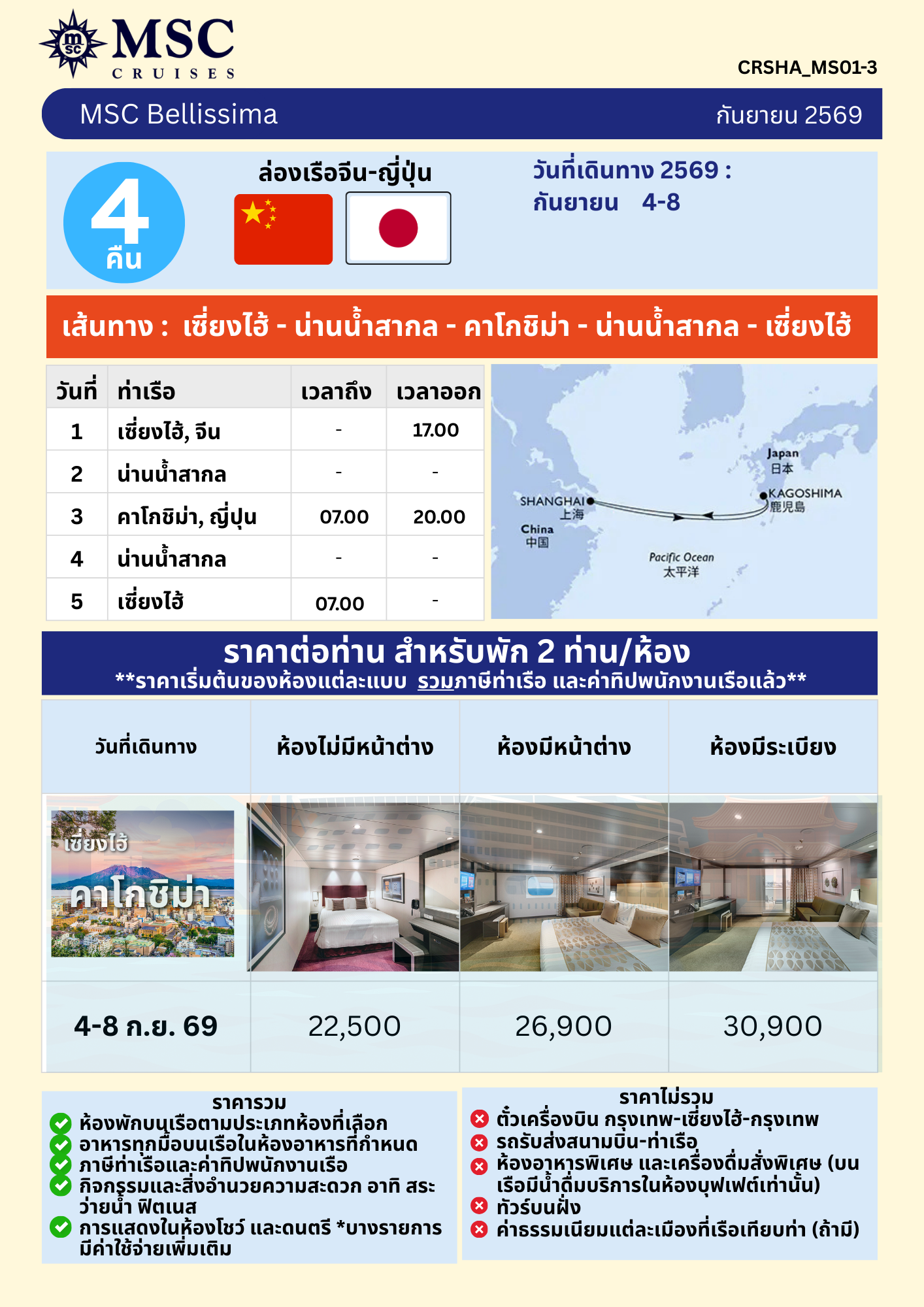 ล่องเรือสำราญ จีน - ญี่ปุ่น 4 คืน