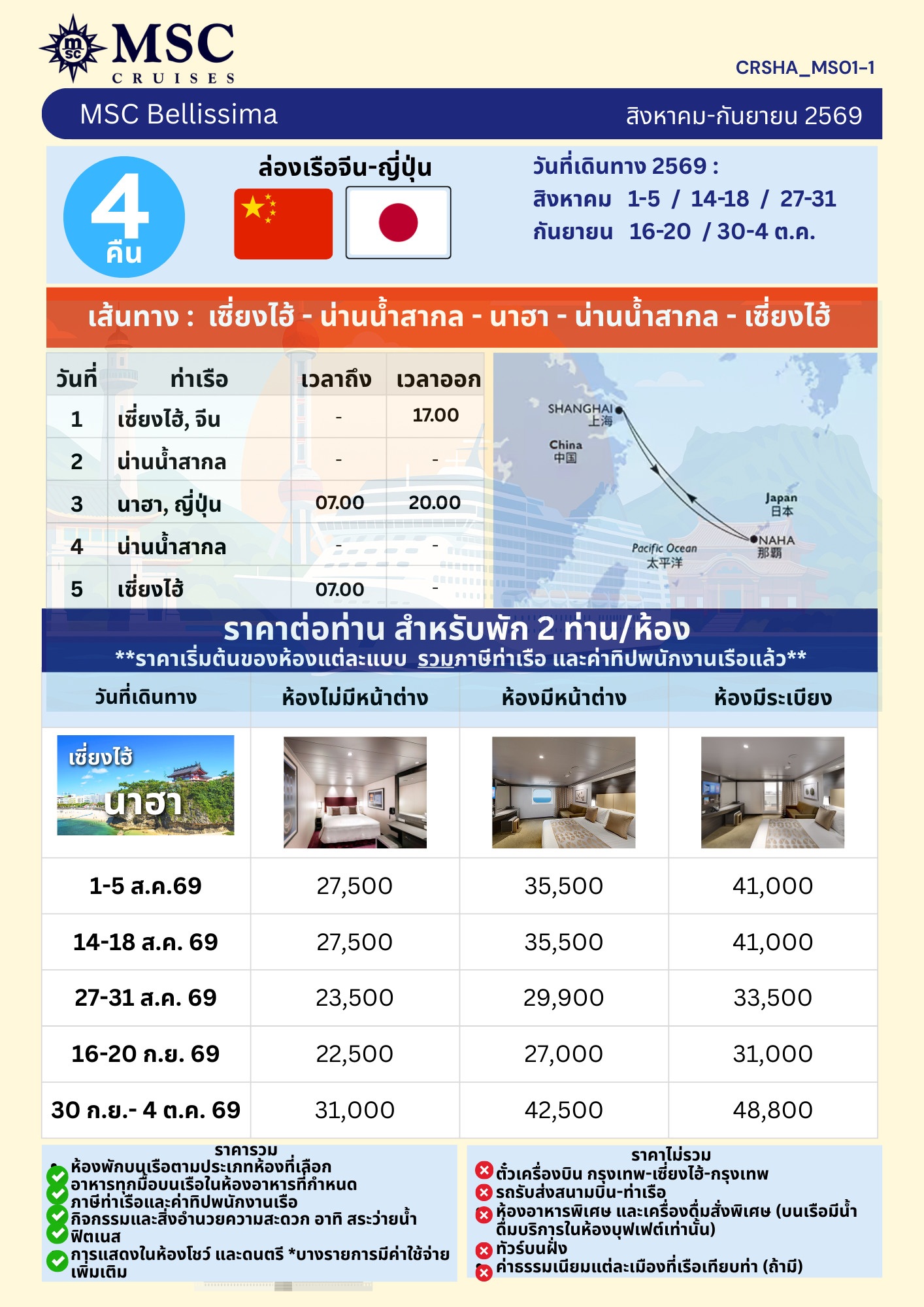เส้นทาง เซี่ยงไฮ้ - น่านน้ำสากล - นาฮา - น่านน้ำสากล - เซี่ยงไฮ้