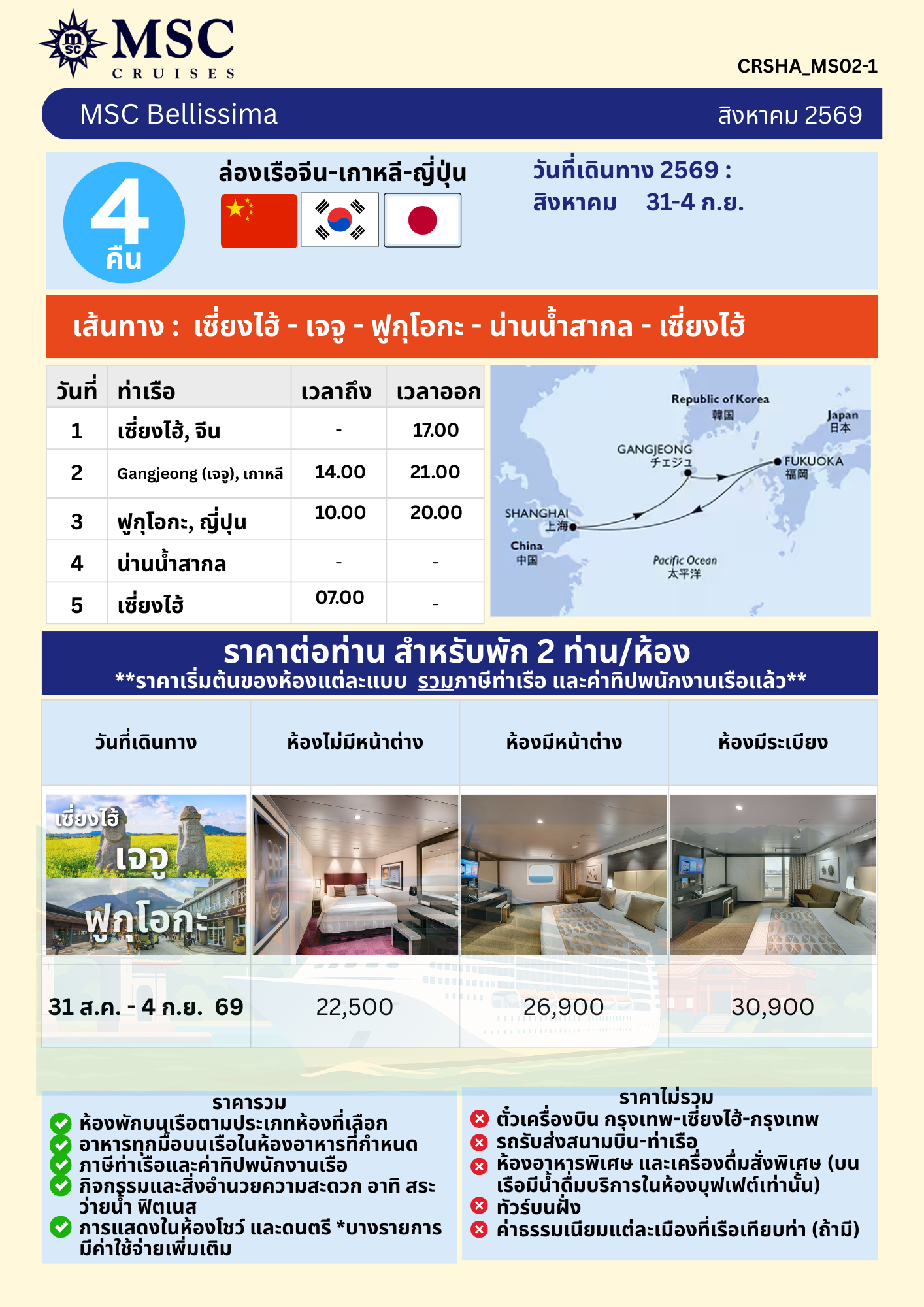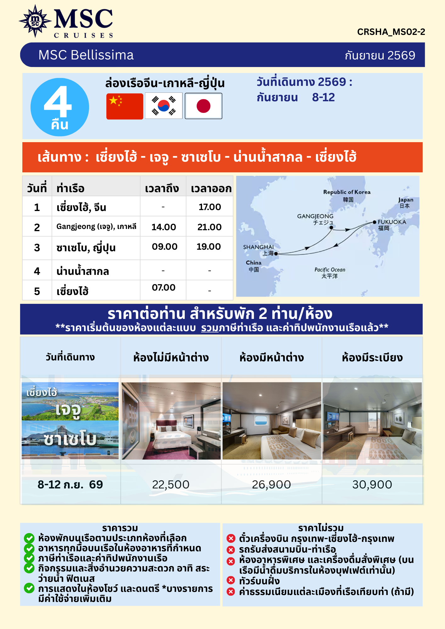 ล่องเรือสำราญ จีน - เกาหลี - ญี่ปุ่น 4 คืน