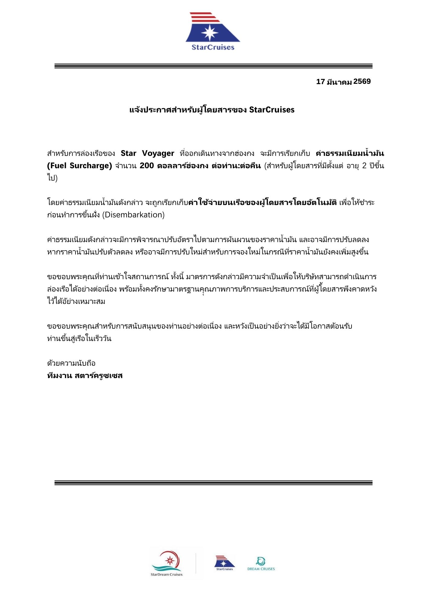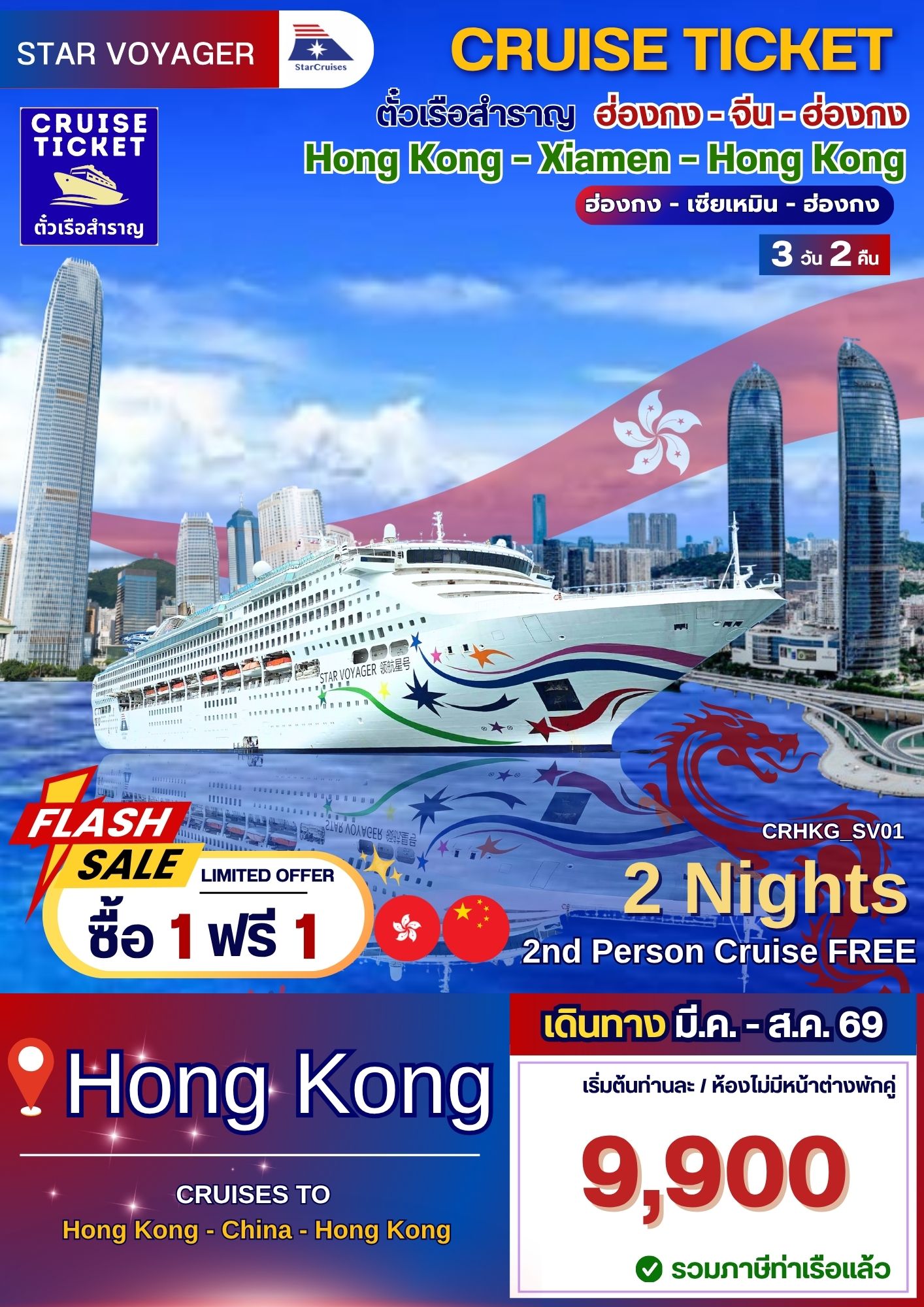 (ตั๋วเรือ) มี.ค. - ส.ค. 69 ล่องเรือสำราญฮ่องกง-จีน 2 คืน - Star Voyager ออกเดินทางทุกวันพุธ