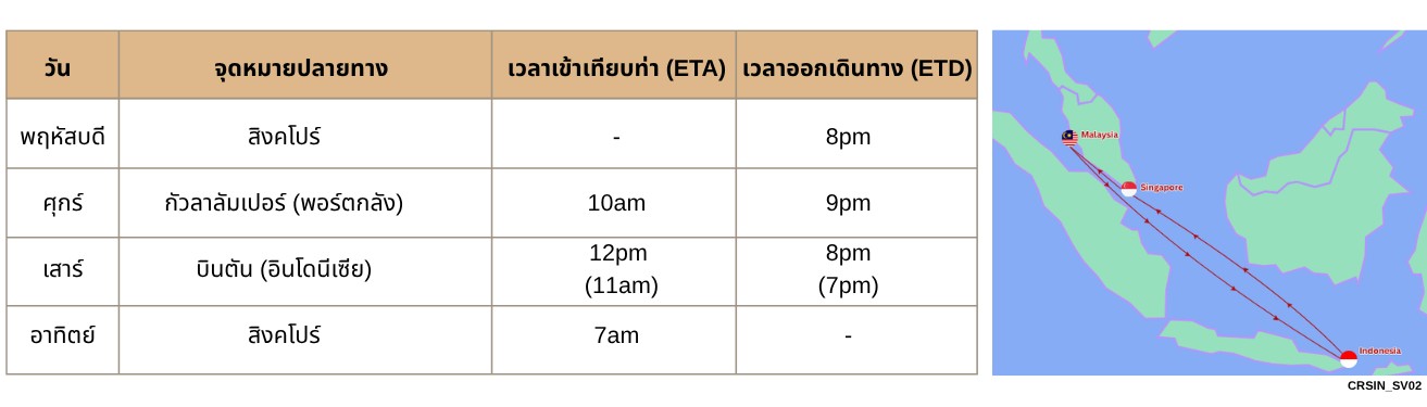 ️️️ เส้นทาง สิงคโปร์ -พอร์ตคลัง - เกาะบินตัน - สิงคโปร์