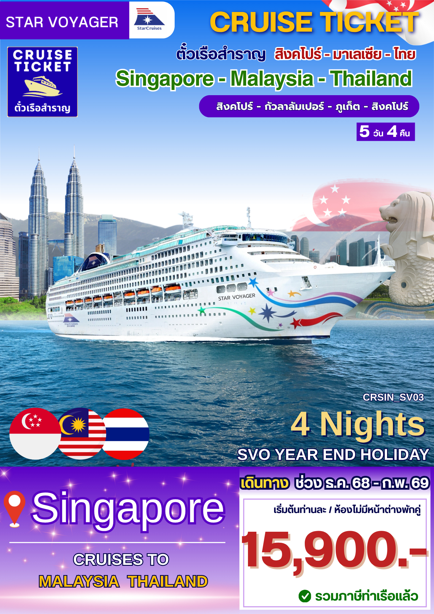 ล่องเรือสำราญ สิงคโปร์-มาเลเซีย-ไทย พักบนเรือ 4 คืน
