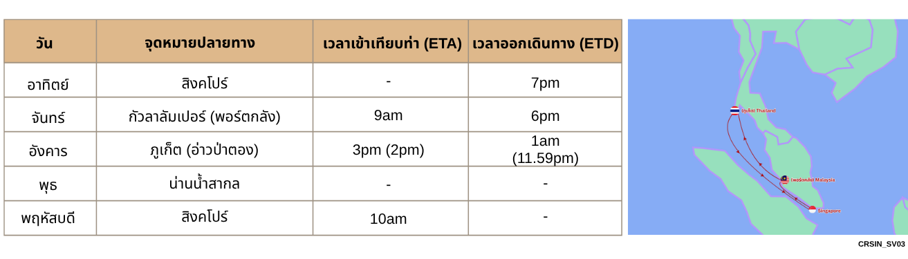 ️️️ เส้นทาง สิงคโปร์ -พอร์ตคลัง - ภูเก็ต - สิงคโปร์