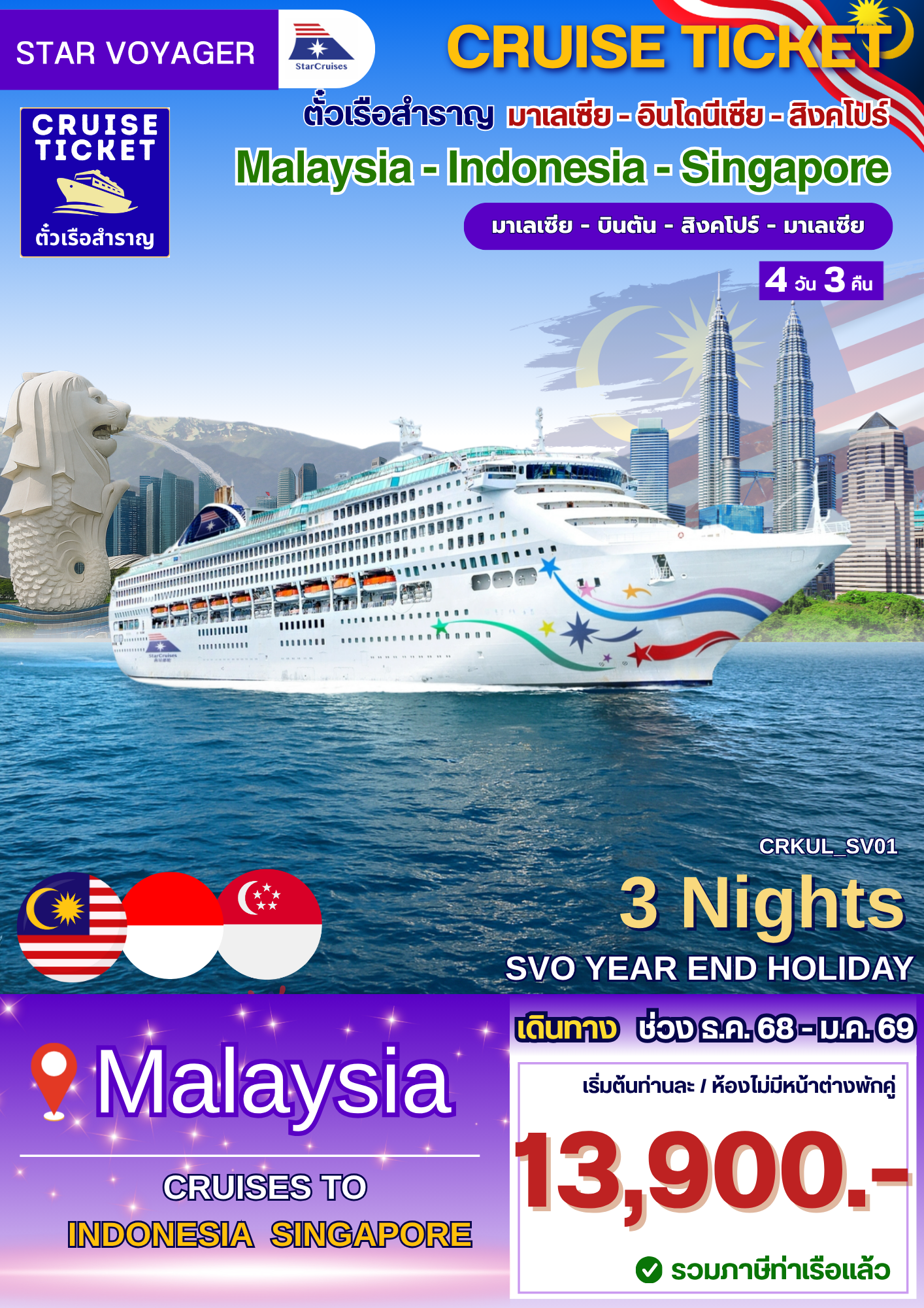 ล่องเรือสำราญ มาเลเซีย-อินโดนีเซีย - สิงคโปร์ พักบนเรือ 3 คืน