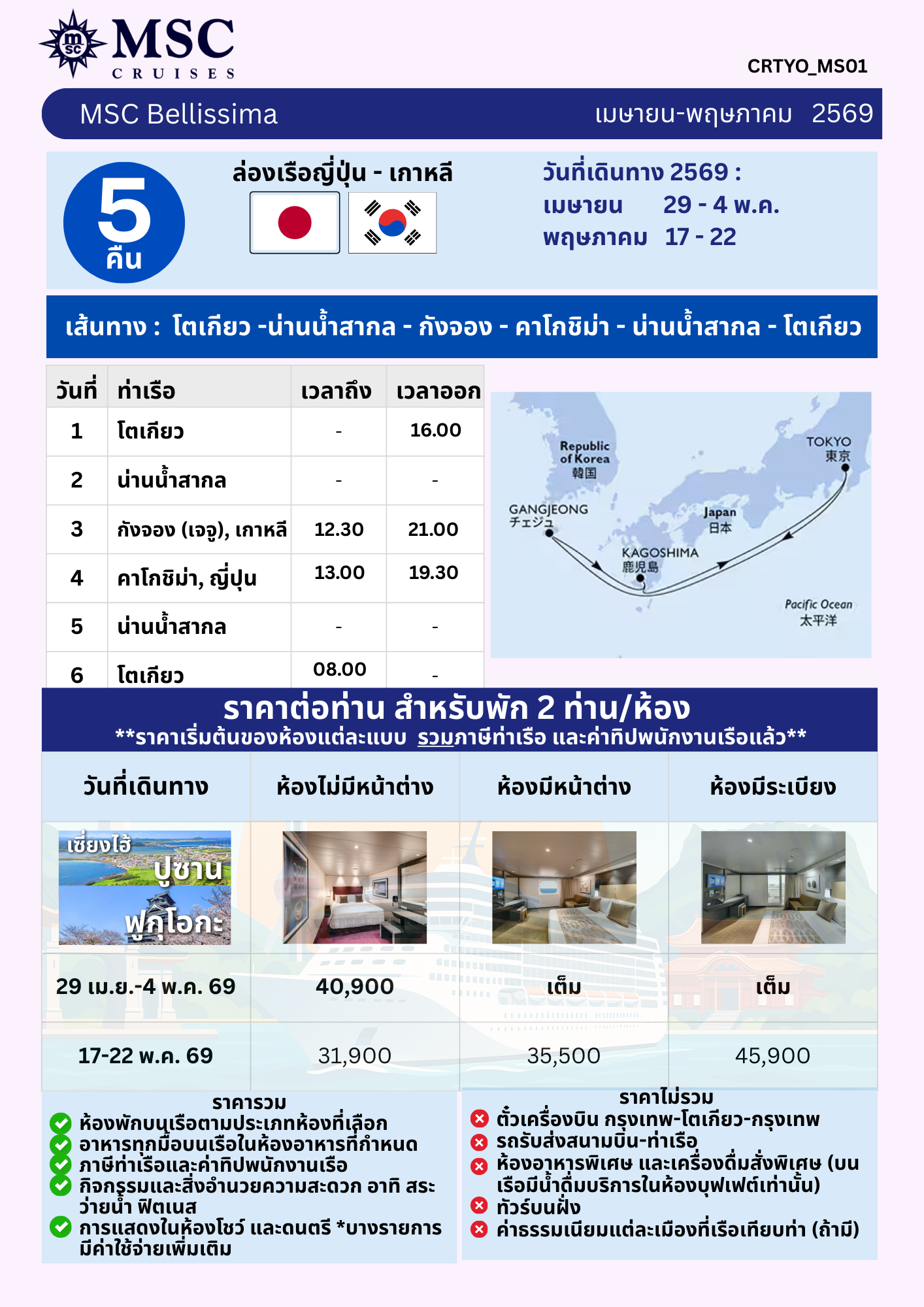 ล่องเรือสำราญ ญี่ปุ่น - เกาหลี 5 คืน