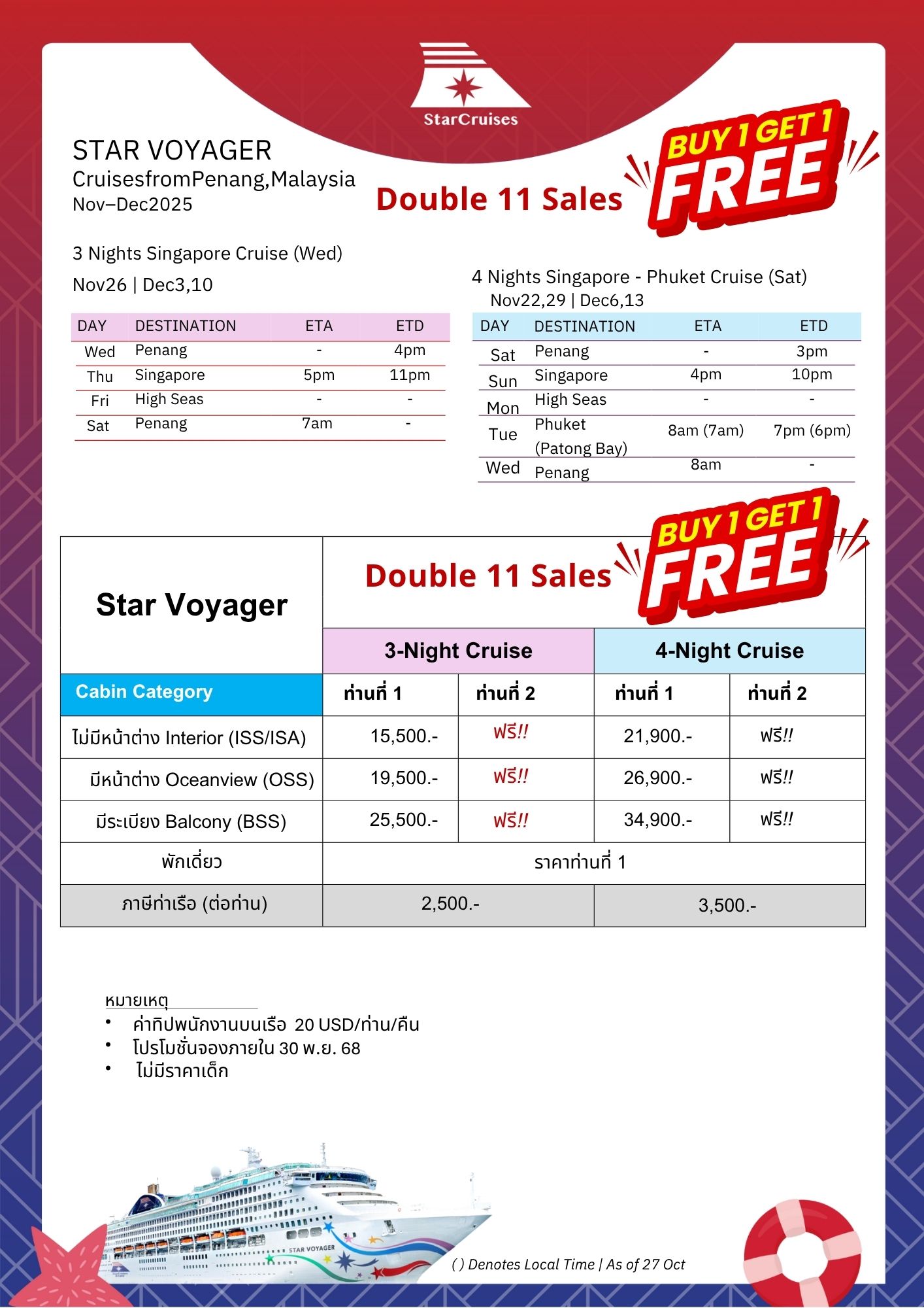 เปิดประสบการณ์ใหม่…พักผ่อนสบายๆ 3 คืน , 4 คืนสุดพิเศษกับเรือสำราญ Star Voyager ออกเดินทางจากปีนัง ประเทศมาเลเซีย สู่เกาะภูเก็ต ประเทศไทย และ สิงคโปร์ พร้อมสนุกไปกับกิจกรรม ความบันเทิงต่าง บนเรือมากมาย