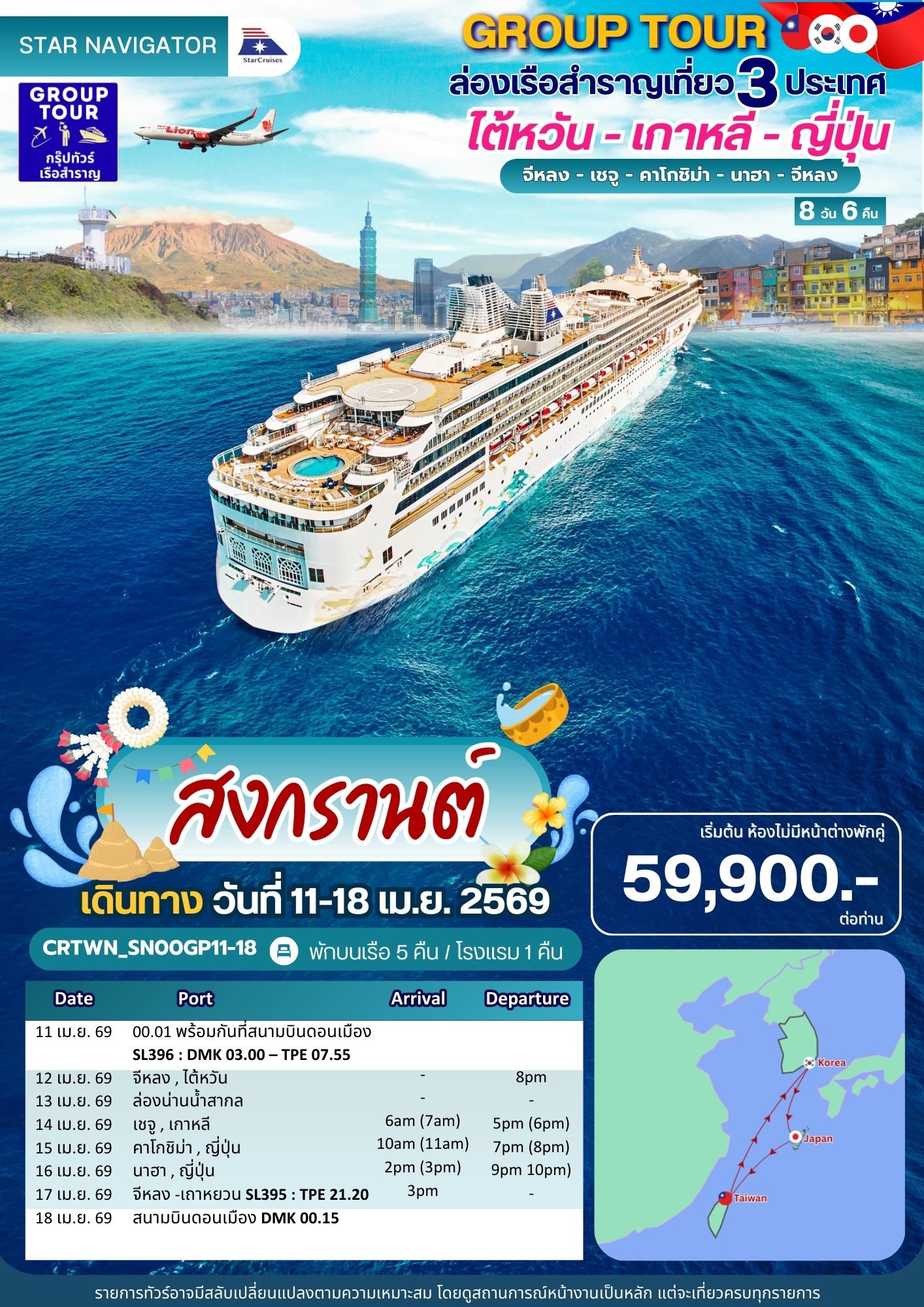 ️️️ เส้นทาง ไต้หวัน-เชจู (เกาหลี) คาโกชิม่า นาฮ่า (ญี่ปุ่น)-ไต้หวัน