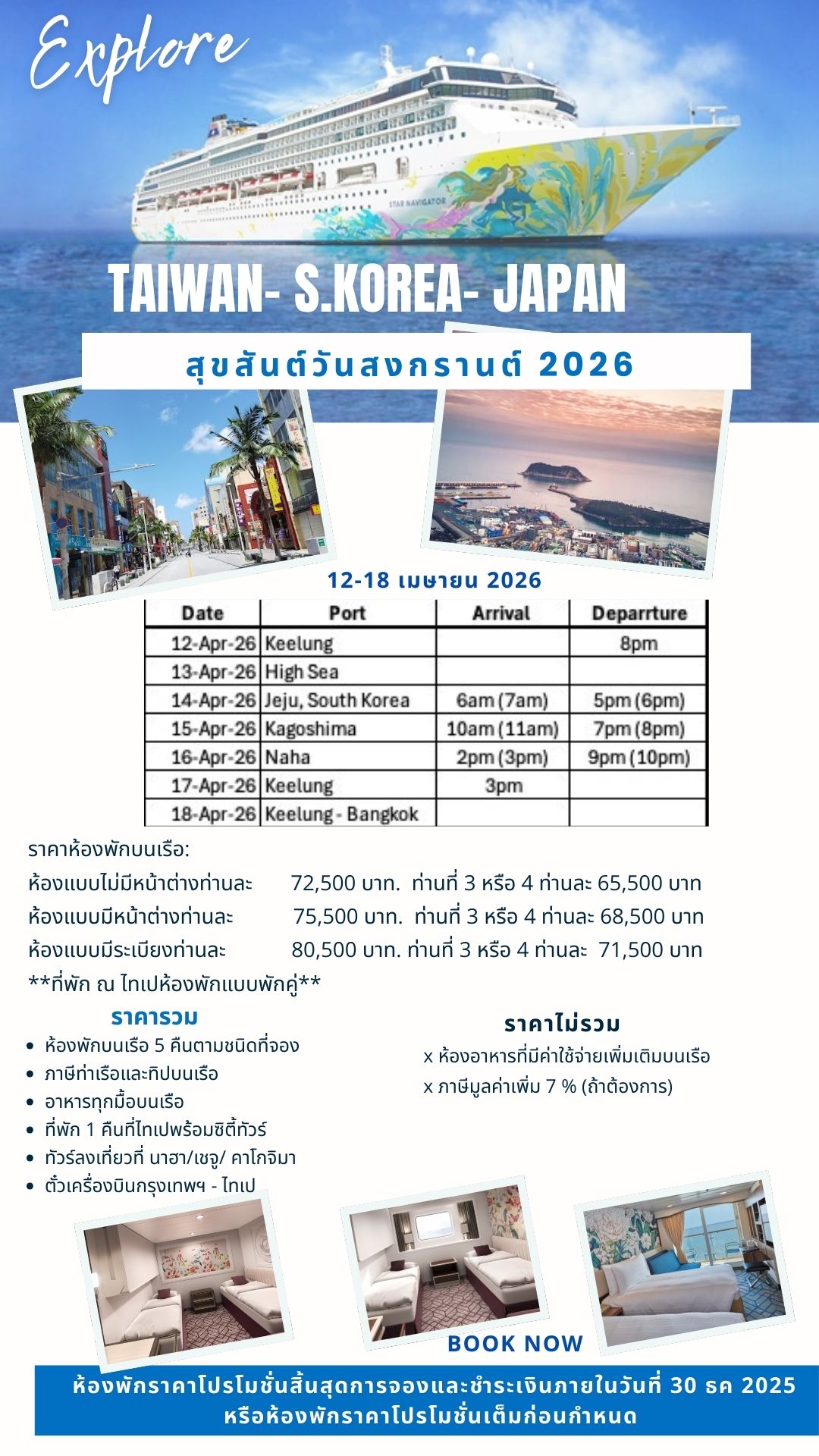 ️️️ เส้นทาง ไต้หวัน-เชจู (เกาหลี) คาโกชิม่า นาฮ่า (ญี่ปุ่น)-ไต้หวัน