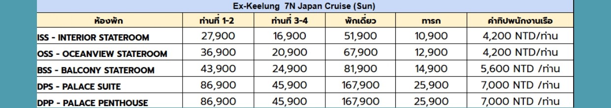 ล่องเรือสำราญ ไต้หวัน-เกาหลี-ญี่ปุ่น พักบนเรือ 7 คืน