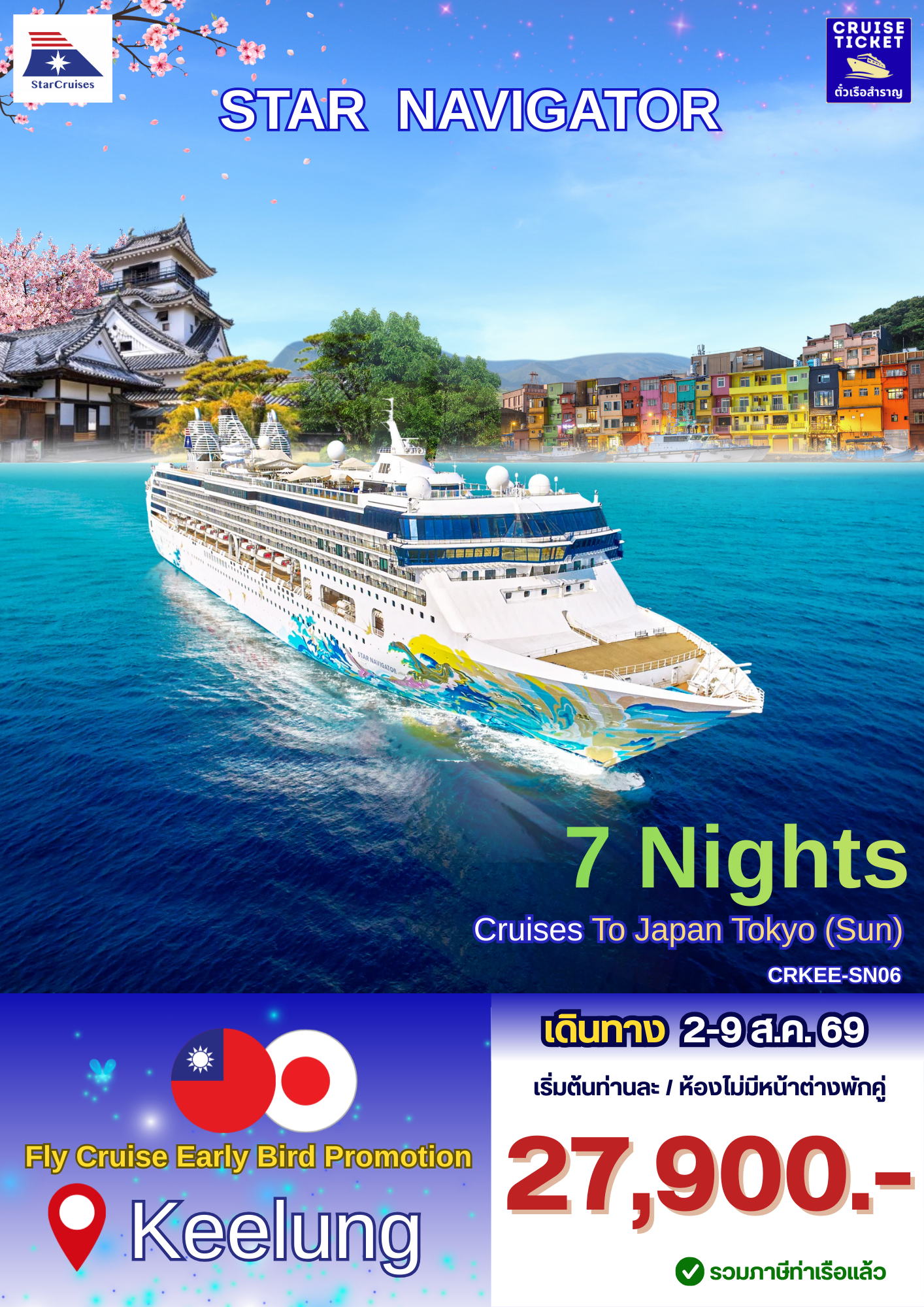 (ตั๋วเรือ) 2-9 ส.ค. 69 ล่องเรือสำราญ ไต้หวัน-เกาหลี-ญี่ปุ่น 7 คืน - Star Navigator