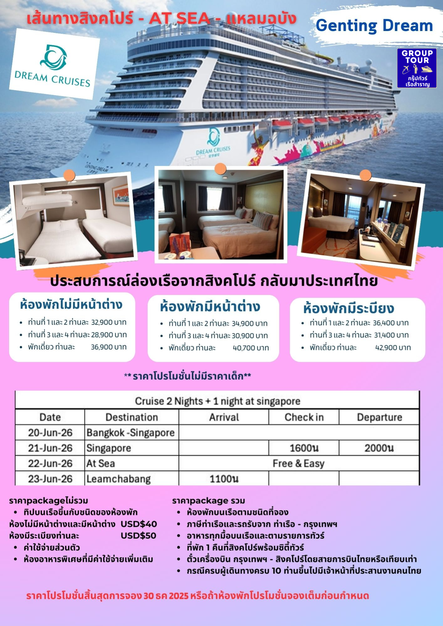ล่องเรือสำราญ สิงคโปร์ - ไทย(แหลมฉบัง) 3 คืน