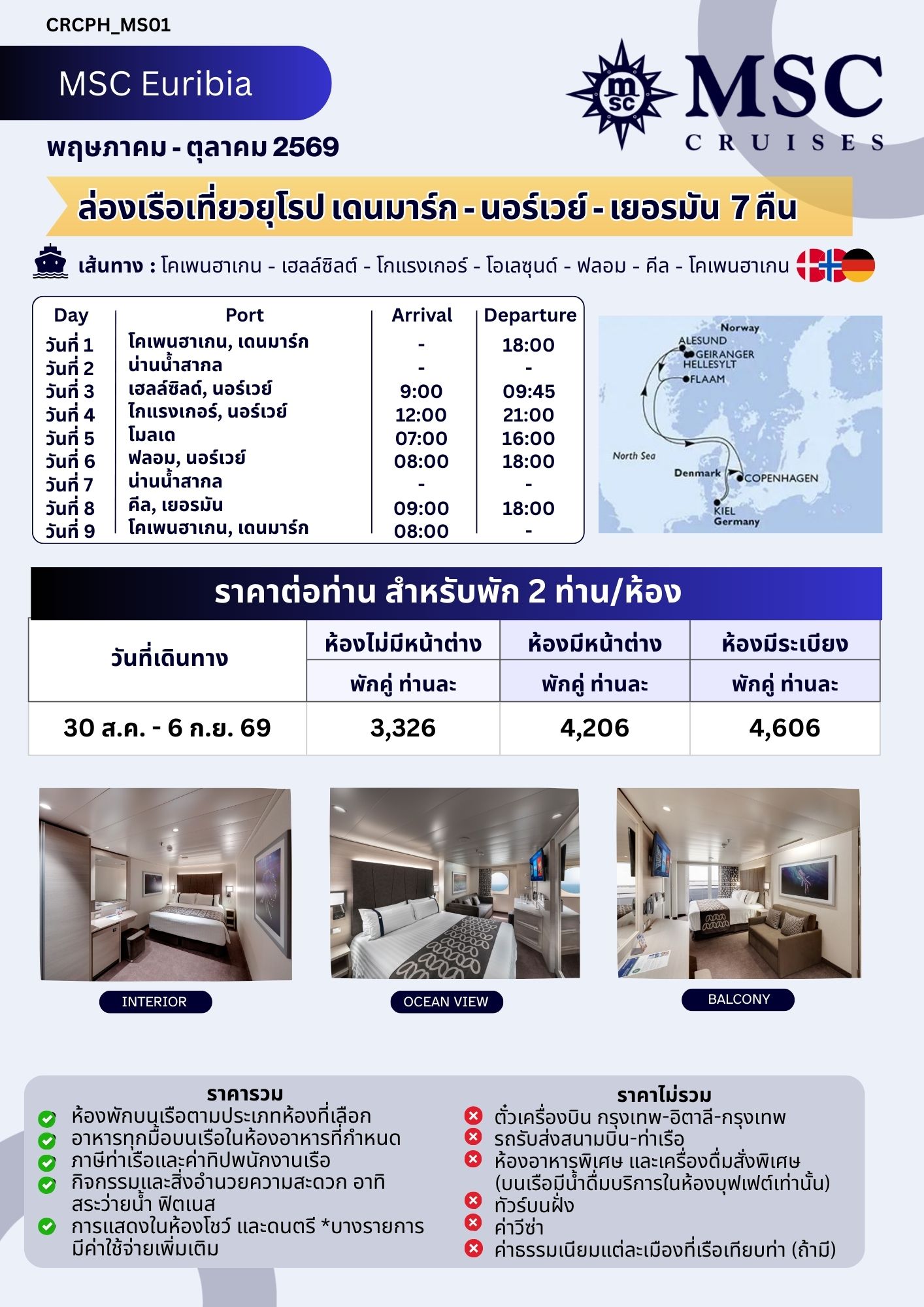 ล่องเรือสำราญ ล่องเรือสำราญ Copenhagen Denmark, Norway, Germany พักบนเรือ 7 คืน
