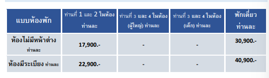 | อัตราค่าบริการ ไม่รวมค่าใช้จ่ายดังนี้ |