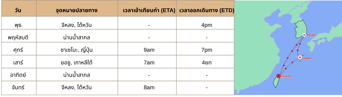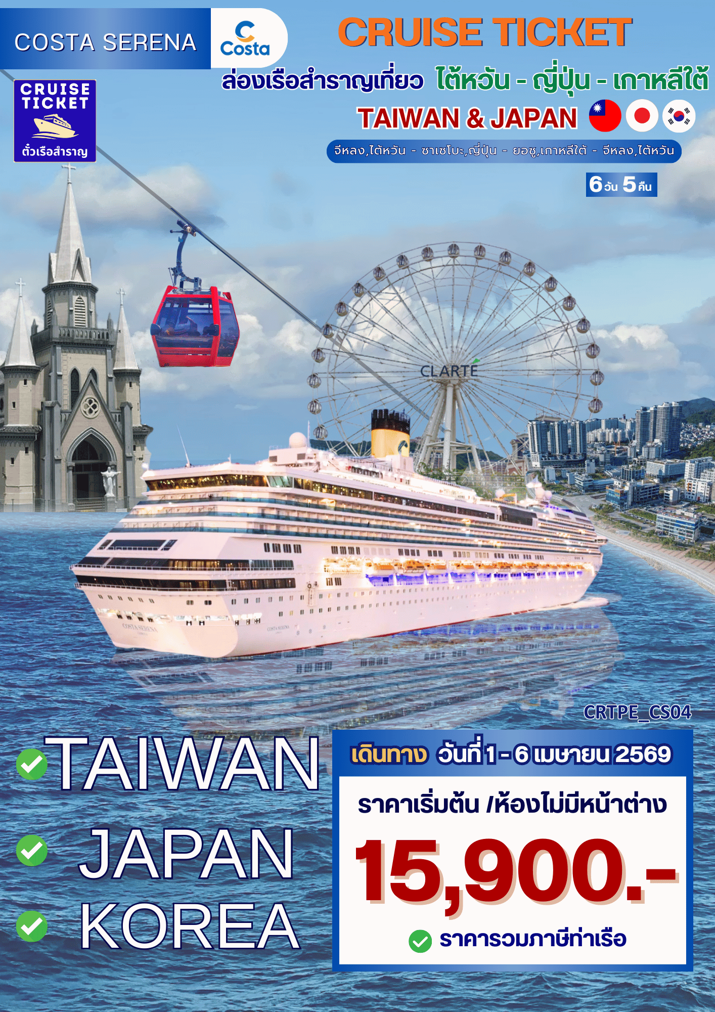 ล่องเรือสำราญ ญี่ปุ่น - ไต้หวัน - เกาหลีใต้ พักบนเรือ 4 คืน