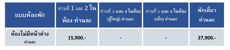 - ห้องพักแบบไม่มีหน้าต่าง พักห้องละ 2 ท่าน