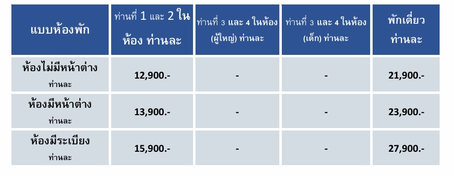 - ห้องพักแบบไม่มีหน้าต่าง พักห้องละ 2 ท่าน