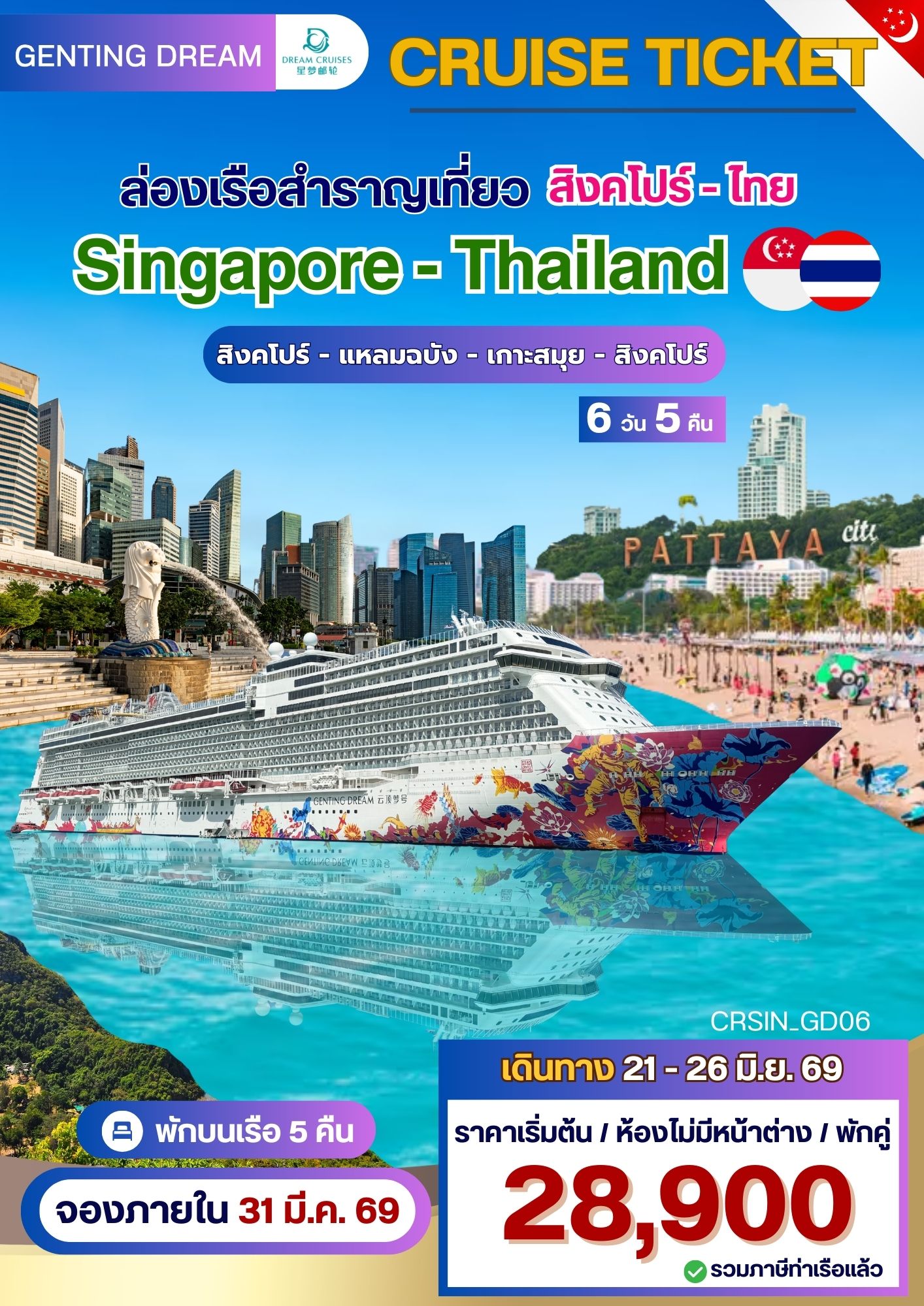 ล่องเรือสำราญ สิงคโปร์-ไทย พักบนเรือ 5 คืน