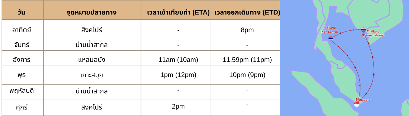 ️️️ เส้นทาง สิงคโปร์ - แหลมฉบัง - เกาะสมุย - สิงคโปร์