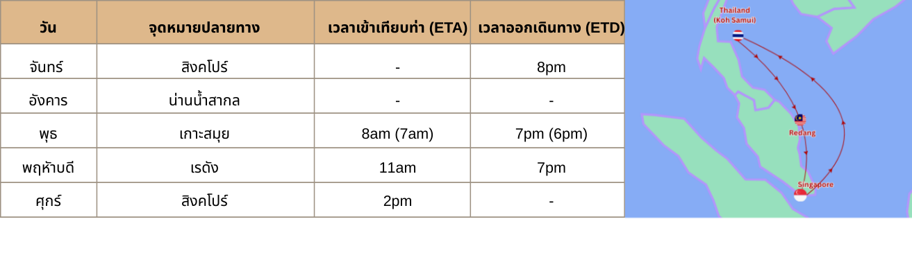 ️️️ เส้นทาง สิงคโปร์ - เกาะสมุย - เรดัง - สิงคโปร์