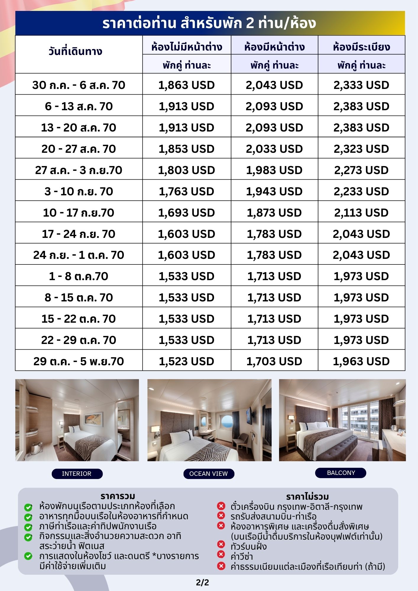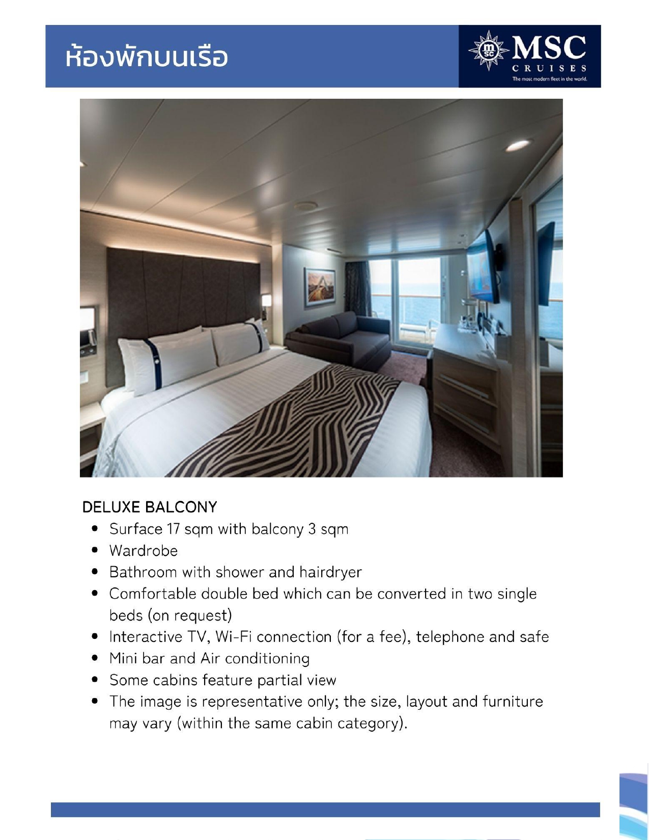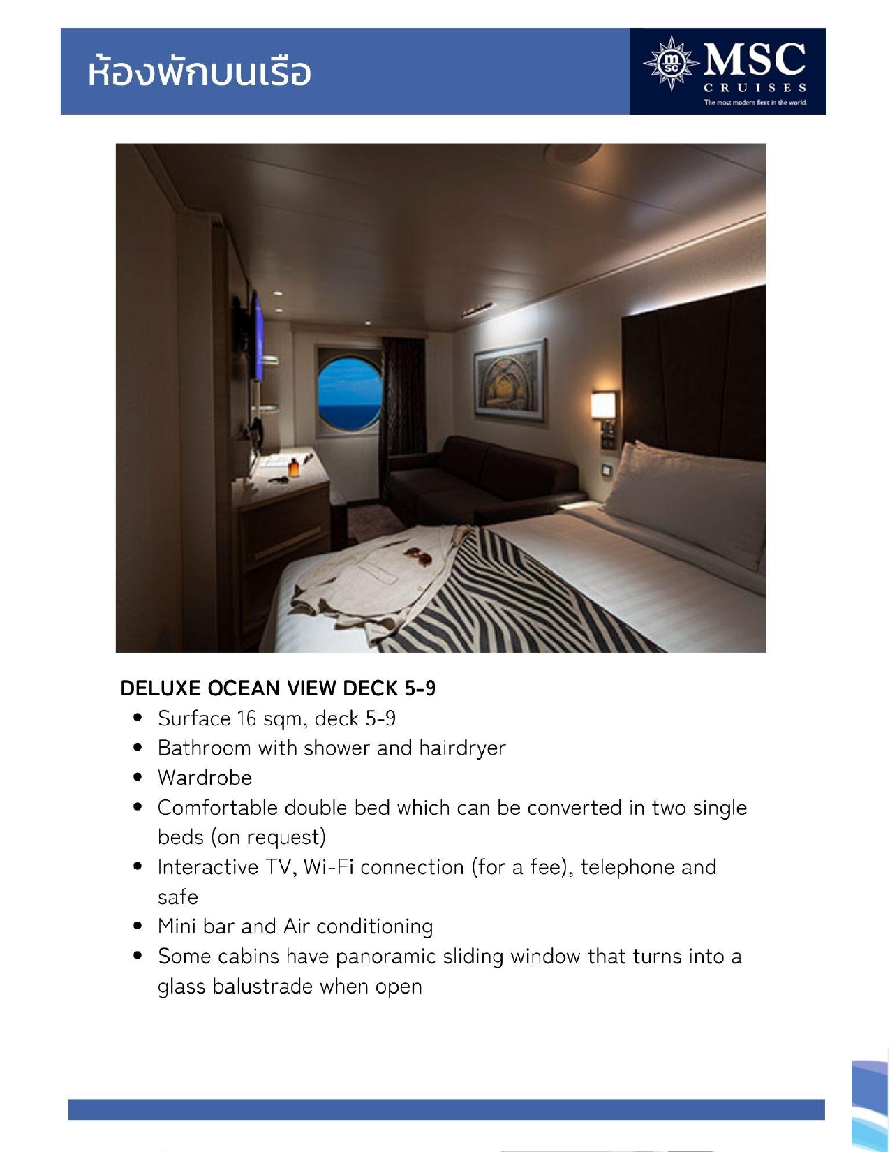 - ห้องพักบนเรือตามประเภทห้องที่เลือก