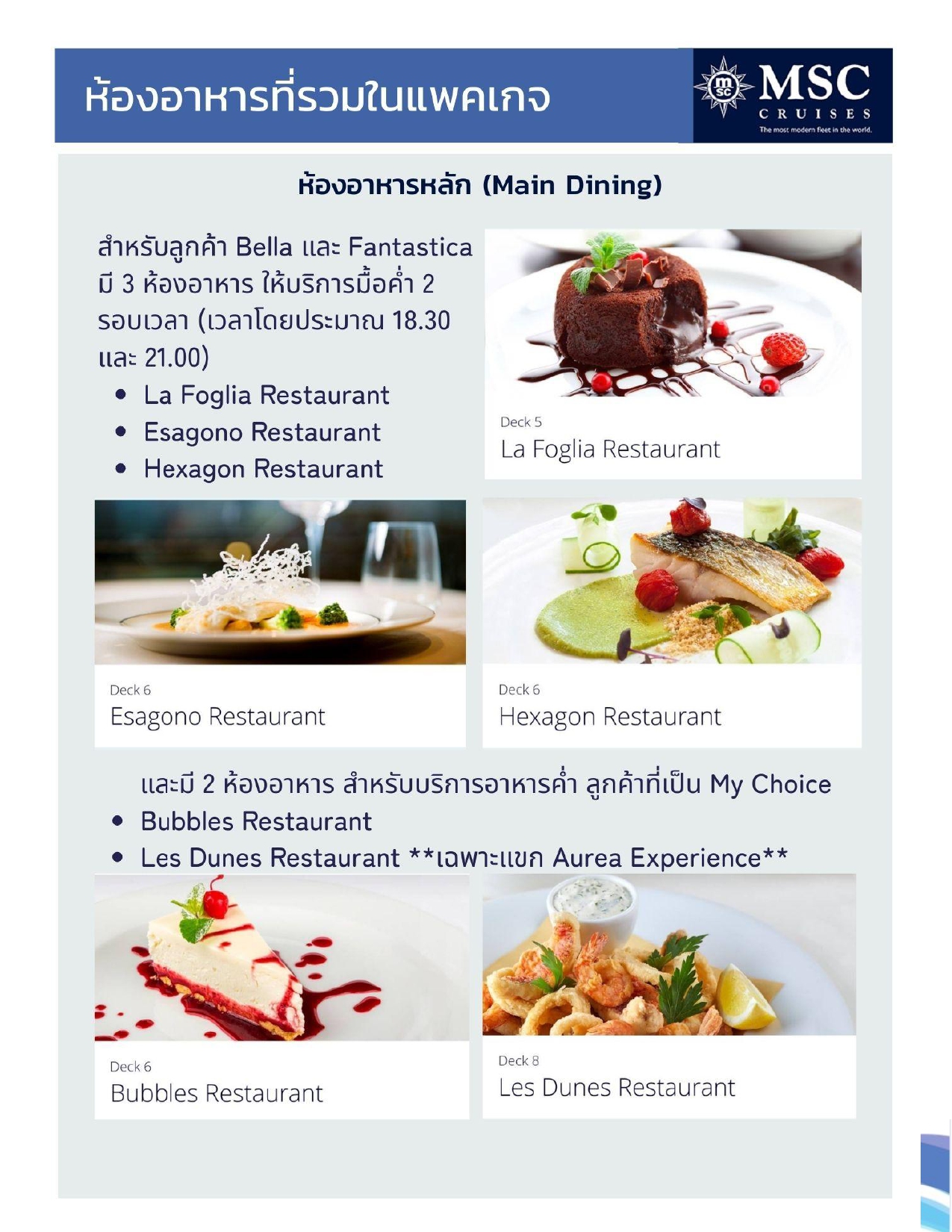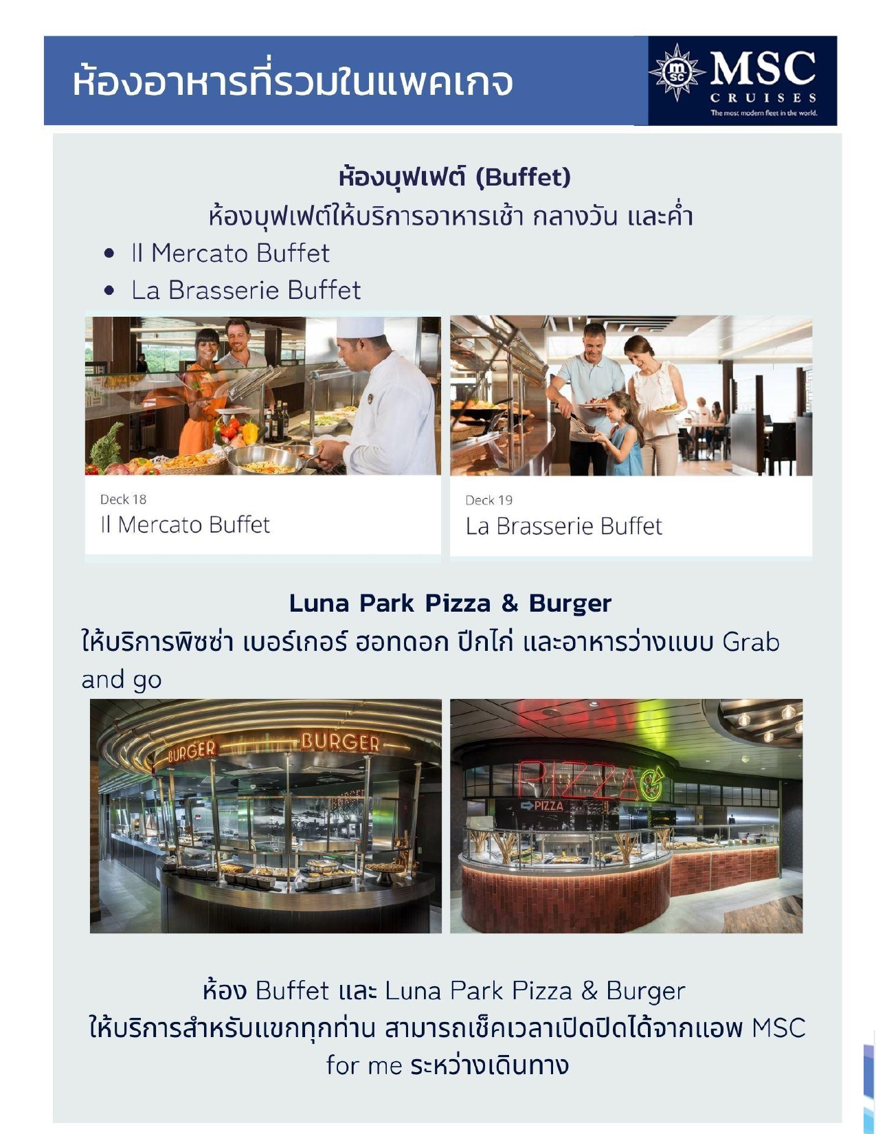 - อาหารทุกมื้อบนเรือในห้องอาหารที่กำหนด