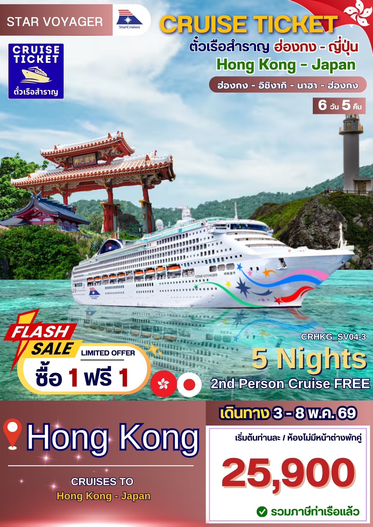 ล่องเรือสำราญ ฮ่องกง-ญี่ปุ่น พักบนเรือ 5 คืน